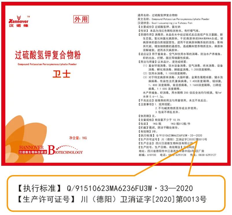 【卫士】——卫消字!高含量55%,非瘟,口蹄疫,牛结节病,消毒必备【过硫酸氢钾复合物粉】发表时间:2021-03-25 12:31 ![]() ![]() 近两年的大趋势下,养殖户们越来越清楚地认识到,病毒才是畜禽养殖业面临的主要杀手! 非洲猪瘟爆发至今,养殖行业与病毒面临一场持久的战争。 有效应对非洲猪瘟已成为养殖业和与养殖有关部门的共同任务。 而阻止病毒传播的最直接武器 就是 卫 士 产品特点